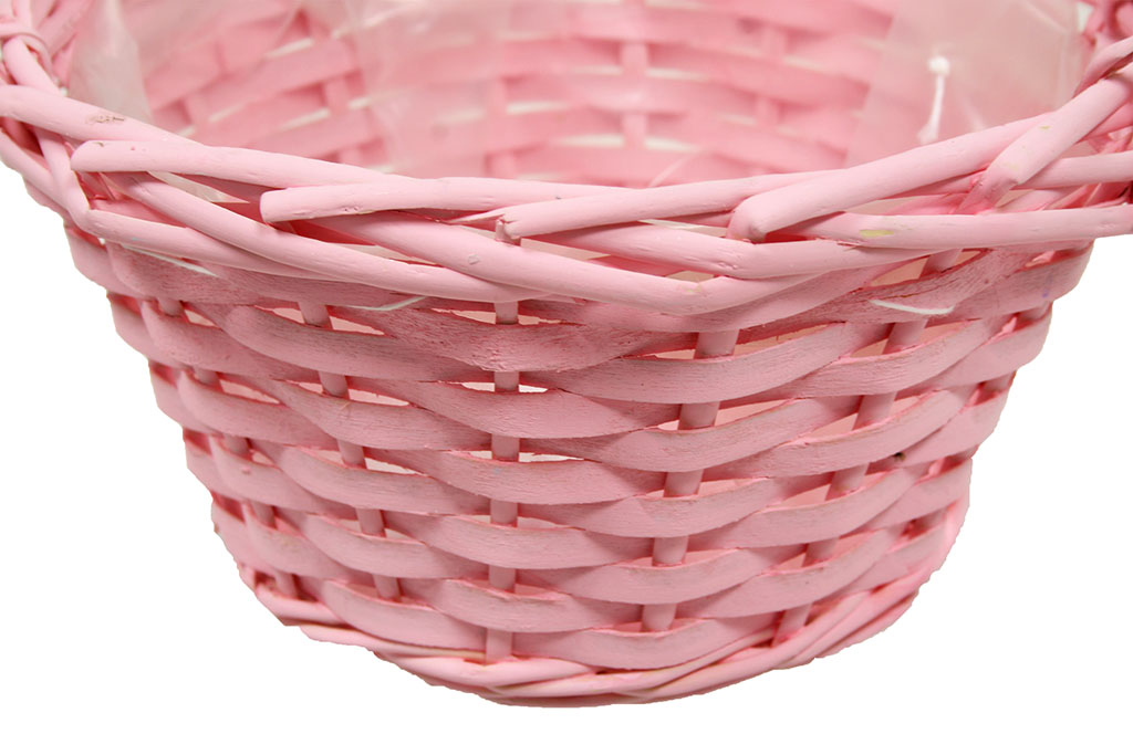 Bonita y práctica bandeja de mimbre de color rosa, esta bandeja dispone de plástico en su interior por lo que es ideal para utilizarla como macetero. Es muy resistente y el mimbre es de muy buena calidad.