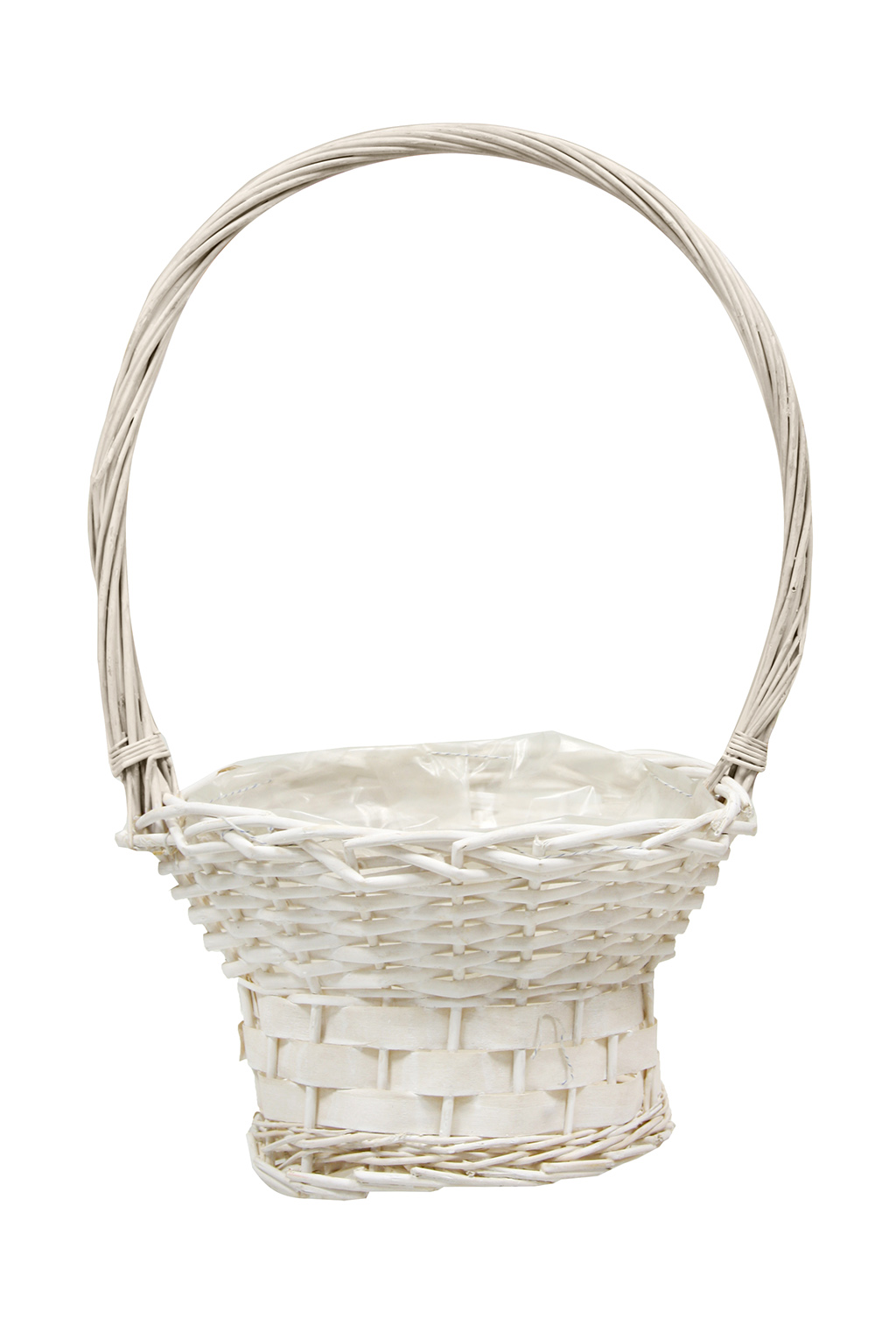 Cesta hecha de mimbre blanco ideal para usar como macetero con flores o crear lotes de productos.