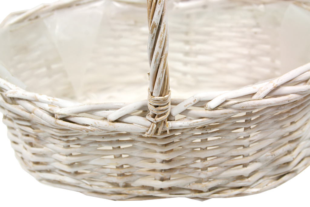 Cesta hecha de mimbre de color blanco, ideal para crear lotes de regalo o para colocar flores