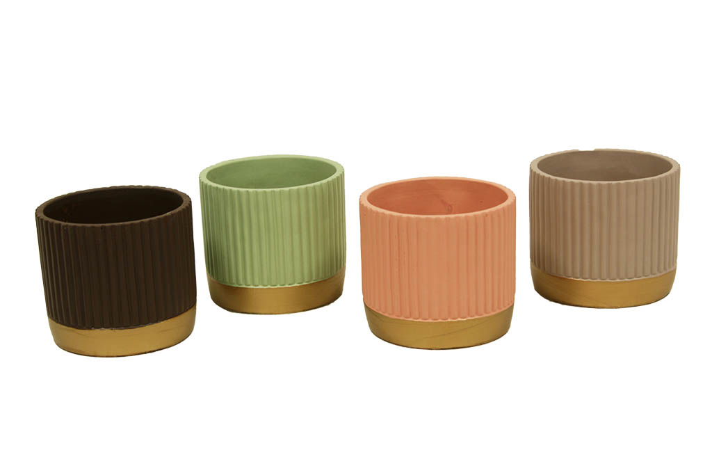 Modernos maceteros de ceramicaen tonos pastel con detalles dorados. Estos maceteros están hechos de materiales de muy buena calidad y son muy originales para la decoración de cualquier estancia del hogar.